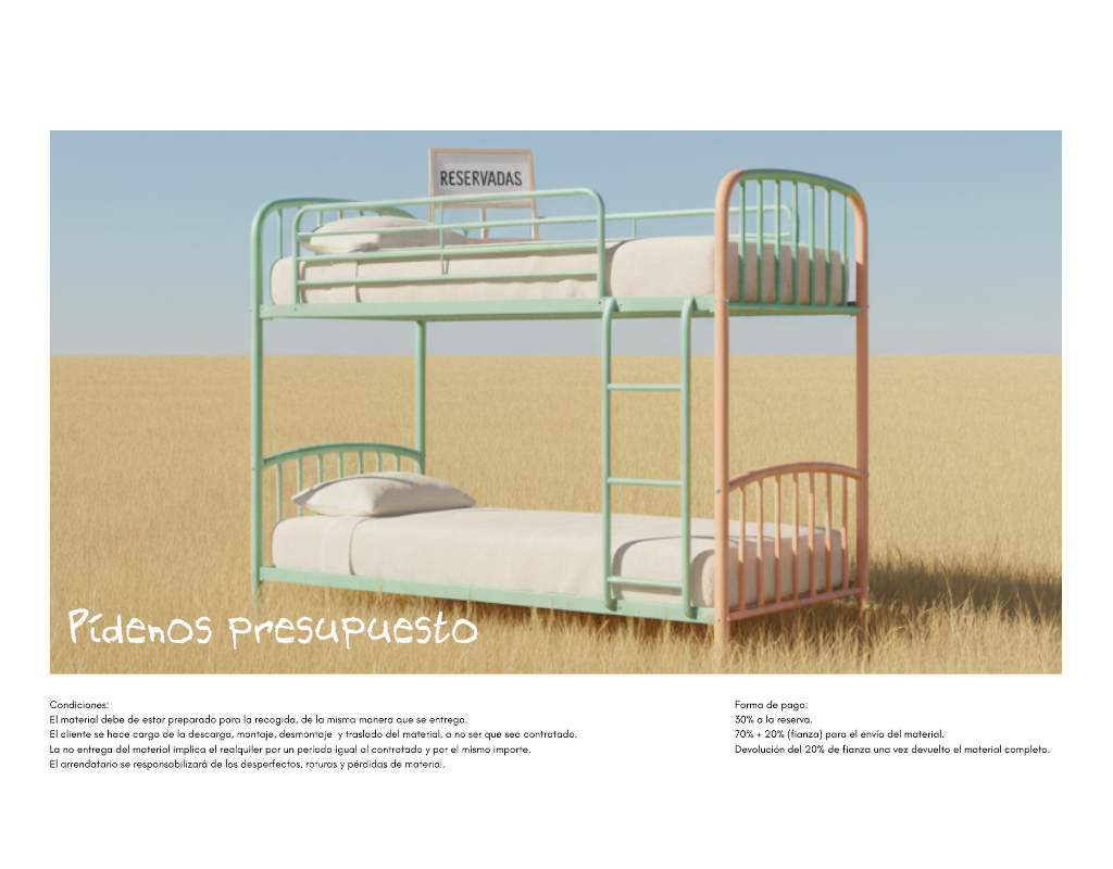 Expertos en convertir cualquier espacio en una zona de descanso de primera. Nos dedicamos al alquiler de literas y equipos de descanso para que dormir bien no sea un lujo… ¡sino parte del plan!